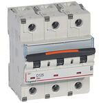 Legrand Leitungsschutzschalter DX3 nach EN 60947-2, 3-polig, D-Charakteristik, Bemessungsstrom In 125 A, Bemessungsschaltvermögen 25 kA nach EN 60947-2, Bemessungsspannung Un 400 VAC, Bemessungsfrequenz 50/60 Hz, Befestigung auf Hutprofilschiene EN 60715 durch zwei rastende Schnellbefestigungen, klare Information vorne auf jedem Gerät, eindeutige Schaltstellungsanzeige rot/grün, mit Beschriftungsfenster, mit Untersteckschutz zum sicheren Einführen des Leiters in Fahrstuhlklemme, Anbau von Hilfsgeräten möglich. Leitungsschutzschalter mit D-Charakteristik sind für den Leitungsschutz in Kraftstromkreisen mit sehr hohen Einschaltströmen vorzusehen (z.B. Schweißtrafos).