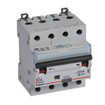 Legrand FI/LS-Schalter DX3, 4-polig, Typ A, für Wechsel- und pulsierende Gleichfehlerströme nach EN 61009-1, VDE 0664-20, unverzögert, Bemessungsstrom In 16 A, Bemessungsfehlerstrom Idn 30 mA.B-Charakteristik, Bemessungsspannung Un 400 VAC , Bemessungsfrequenz 50 Hz, Bemessungsschaltvermögen Icn 6 kA, Stoßstromfest bis 250 A, Energiebegrenzungsklasse 3, Auslöseanzeige: gelb=Fehlerstrom-oder Prüftastenauslösung, farblos= Kurzschluss-oder Handauslösung. Befestigung auf Hutprofilschiene EN 60715 durch rastende Schnellbefestigungen, klare Information vorne auf jedem Gerät, eindeutige Schaltstellungsanzeige rot/grün am Schalthebel (verriegelbar), mit Beschriftungsfenster, mit Untersteckschutz zum sicheren Einführen des Leiters in Fahrstuhlklemme, Anbau von Hilfsgeräten möglich.