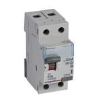 Legrand Fehlerstromschutzschalter TX3, Typ F-G, Mischfrequenzsensitiv nach EN 62423, VDE 0664-10, EN 61008-1, G nach ÖVE E8601, kurzzeitverzögert, verzögert mindestens 10 ms, 2-polig, Bemessungsstrom In 63 A, Bemessungsfehlerstrom Idn 30 mA, Bemessungsspannung Un 230 VAC, Bemessungsfrequenz 50 Hz, Stoßstromfest bis 3000 A, Bemessungskurzschlussstrom 10 kA bei geeigneter Vorsicherung, Befestigung auf Hutprofilschiene EN 60715 durch rastende Schnellbefestigungen, klare Information vorne auf jedem Gerät, eindeutige Schaltstellungsanzeige rot/grün am Schalthebel, mit Beschriftungsfenster, mit Untersteckschutz zum sicheren Einführen des Leiters in Fahrstuhlklemme, Anbau von Hilfsgeräten möglich.