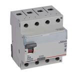 Legrand Fehlerstromschutzschalter TX3, Typ A, für Wechsel- und pulsierende Gleichfehlerströme nach VDE 0664-10, EN 61008-1, unverzögert, 4-polig, Bemessungsstrom In 25 A, Bemessungsfehlerstrom Idn 500 mA, Bemessungsspannung Un 400 VAC, Bemessungsfrequenz 50 Hz, Stoßstromfest bis 250 A, Bemessungskurzschlussstrom 10 kA bei geeigneter Vorsicherung, Befestigung auf Hutprofilschiene EN 60715 durch rastende Schnellbefestigungen, klare Information vorne auf jedem Gerät, eindeutige Schaltstellungsanzeige rot/grün am Schalthebel, mit Beschriftungsfenster, mit Untersteckschutz zum sicheren Einführen des Leiters in Fahrstuhlklemme, Anbau von Hilfsgeräten möglich.