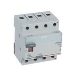 Legrand Fehlerstromschutzschalter TX3, Typ A-S, für Wechsel- und pulsierende Gleichfehlerströme nach VDE 0664-10, EN 61008-1, selektiv, verzögert mindestens 40 ms, 4-polig, Bemessungsstrom In 63 A, Bemessungsfehlerstrom Idn 300 mA, Bemessungsspannung Un 400 VAC, Bemessungsfrequenz 50 Hz, Stoßstromfest bis 3000 A, Bemessungskurzschlussstrom 10 kA bei geeigneter Vorsicherung, Befestigung auf Hutprofilschiene EN 60715 durch rastende Schnellbefestigungen, klare Information vorne auf jedem Gerät, eindeutige Schaltstellungsanzeige rot/grün am Schalthebel, mit Beschriftungsfenster, mit Untersteckschutz zum sicheren Einführen des Leiters in Fahrstuhlklemme, Anbau von Hilfsgeräten möglich.