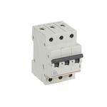 Legrand Leitungsschutzschalter RX3 nach EN 60898-1, VDE 0641-11, EN 60947-2, 3-polig, B-Charakteristik, Bemessungsstrom In 20 A, Bemessungsschaltvermögen Icn 6 kA nach EN 60898-1, Bemessungsspannung Un 400 VAC, Bemessungsfrequenz 50/60 Hz, Energiebegrenzungsklasse 3, Befestigung auf Hutprofilschiene EN 60715 durch eine rastende Schnellbefestigung, klare Information vorne auf jedem Gerät, Kennzeichnung Schaltstellungsanzeige On/Off, mit Beschriftungsfeld, Anbau von Hilfsgeräten nicht möglich. Leitungsschutzschalter mit B-Charakteristik sind vornehmlich für den Leitungsschutz in Licht- und Steckdosen-Stromkreisen bestimmt.