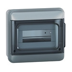 Legrand Feuchtraumverteiler Plexo S, Schutzart IP65 - IK07, 1-reihig, 8 Module, Abmessung 200 x 213 x 106 (Höhe x Breite x Tiefe in mm), selbstverlöschend 650 °C, mit N- und PE-Klemmen, Aufputzverteiler Schutzklasse II. Türen transparent, beidseitig anschlagbar. Nach IEC 60670-24, für den Bau von Installationsverteilern nach IEC 61439-3.