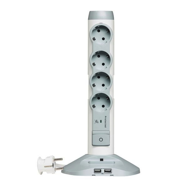 Energiesäule mit Befestigungsmöglichkeit für Tischmontage, beleuchteter Schalter mit LED, drehbar, eine abgesetzte Steckdose, 2 USB-Steckplätze, 1 Mini-USB-Steckplatz