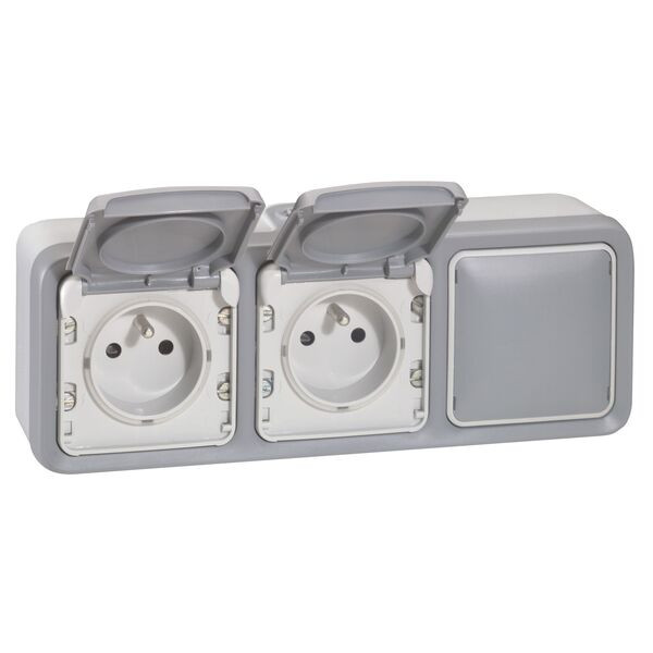 Gehäuse 3-fach waagerecht Feuchtraum Aufputz Plexo 55 grau