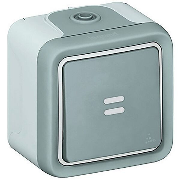 Wipptaster Schliesser 1-polig beleuchtetFeuchtraum Aufputz Plexo 55 grau