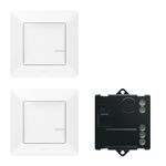 Vorkonfiguriertes Funk-Set für "Valena Life with Netatmo": Wechselschaltung mit Mikromodul - Vorkonfiguriertes Set zum Schalten von einem Lichtauslass mittels Mikromodul und Wandsendern bestehend aus:- 1x Funk-Mikromodul für Beleuchtung zur Installation direkt beim Lichtauslass. Anschluss mit Neutralleiter. Wird angesteuert durch einen oder mehrere drahtlose Funk-Wandsender und/oder herkömmliche Taster, wenn ein Fernschalter ersetzt wird. Zum Schalten von LED-, Halogen- und Kompakt-Leuchtstofflampen bis 300 W.- 2x Funk-Wandsender Licht zum Steuern von Funk-Steckdosen, Mikromodulen und/oder Funk-Lichtschaltern. LED-Anzeige für Batteriestatus. Ausgestattet mit einer 3 V-Batterie CR2032 (Standby-Lebensdauer: 8 Jahre) und 4wiederverwendbare Klebestreifen zur Befestigung des Wandsenders auf jeder Oberfläche. Dieser kann auch direkt an der Wand oder an eine Installationsdose geschraubt werden.Auslieferung komplett mit Wippe, Abdeckrahmen und Staubschutzabdeckung.Bemerkung: Bei Erweiterung der vorkonfigurierten Sets ist zu beachten, dass die Wandsender immer alle Schalter, Steckdosen und Mikromodule schalten.Ausführung: Valena Life in der Farbe Ultraweiss
