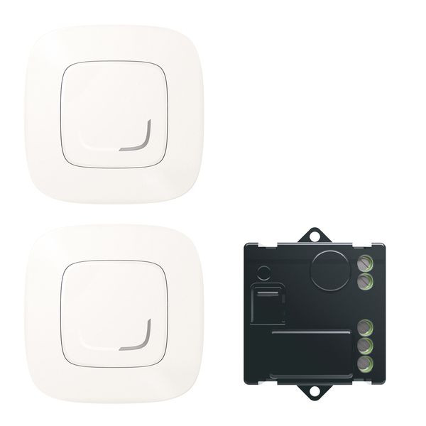 Vorkonfiguriertes Funk-Set für "Valena Allure with Netatmo": Wechselschaltung mit Mikromodul - Vorkonfiguriertes Set zum Schalten von einem Lichtauslass mittels Mikromodul und Wandsendern bestehend aus:- 1x Funk-Mikromodul für Beleuchtung zur Installation direkt beim Lichtauslass. Anschluss mit Neutralleiter. Wird angesteuert durch einen oder mehrere drahtlose Funk-Wandsender und/oder herkömmliche Taster, wenn ein Fernschalter ersetzt wird. Zum Schalten von LED-, Halogen- und Kompakt-Leuchtstofflampen bis 300 W.- 2x Funk-Wandsender Licht zum Steuern von Funk-Steckdosen, Mikromodulen und/oder Funk-Lichtschaltern. LED-Anzeige für Batteriestatus. Ausgestattet mit einer 3 V-Batterie CR2032 (Standby-Lebensdauer: 8 Jahre) und 4wiederverwendbare Klebestreifen zur Befestigung des Wandsenders auf jeder Oberfläche. Dieser kann auch direkt an der Wand oder an eine Installationsdose geschraubt werden.Auslieferung komplett mit Wippe, Abdeckrahmen und Staubschutzabdeckung.Bemerkung: Bei Erweiterung der vorkonfigurierten Sets ist zu beachten, dass die Wandsender immer alle Schalter, Steckdosen und Mikromodule schalten.Ausführung: Valena Allure in der Farbe Perlmutt