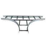 T-Stück, Breite: 200 mm, Radius 445 mm, Sprossenöffnungen nach oben, Montageflanschen einschieben im Leiterbaumprofil