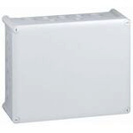 Legrand Abzweigdose Plexo. Rechteckig 310 x 240 x 124 mm (H x B x T), Schutzart IP 55 – IK 07, mit Vorprägung für metrische Leitungseinführung, Deckel mit 1/4-Drehung Schnellverschluss, Lichtgrau RAL 7035, selbstverlöschend 750°C, beschriftbarer Deckel.