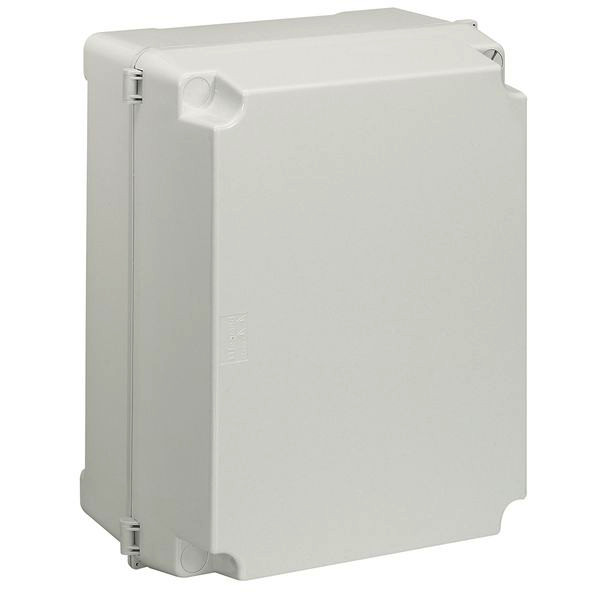 Legrand Kunststoffgehäuse, Übertiefe, Rechteckig 310 x 240 x 160 mm (H x B x T), Schutzart IP 55 – IK 07, Glatte Ausführung, Deckel mit 4 Verschlussschrauben, Lichtgrau RAL 7035, selbstverlöschend 750°C, Temperaturbeständigkeit: -20 °C bis +50 °C. Für industrielle Anwendungen, Geräte können verschient oder auf vollflächige Montageplatte befestigt werden.