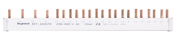 Legrand Stiftkammschienen - Kombination, 4-polig, 13 TE, Querschnitt: 10 mm², 3-phasig+N, für 1 FI-Schutzschalter 4-polig und 9 LS-Schalter 1+N, 1-modulig, Anzahl der angeschlossenen Geräte max.: 10