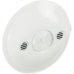 Dual-Tech-Bewegungsmelder (Passiv-Infrarot und Ultraschall) für Unterputz- und Einbaumontage, IP20, Erfassungsbereich: 360°, Reichweite: 11 m (95 m²) bei Montagehöhe 2.5 m, Helligkeitsschwellwerte: 1 –1275 lux, Nachlaufzeit: 1 Sekunde – 60 Minuten, Parametrierung mittels Fernbedienung, Funktionsmodi: Automatik, Eco und Walkthrough, Schaltleistung bei 230 V a.c.: 2000 W bei Glüh- und Hochvolt-Halogenlampen, 10× (2 × 36 W) Leuchtstofflampen, 500 W Kompaktleuchtstofflampen, 1000 VA mit elektronischen Vorschaltgeräten und konventionellen Transformatoren, Bohrlochdurchmesser für Deckeneinbau: 65 mm