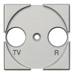 Zentralplatte für handesübliche Antennensteckdosen, 2-Loch, Beschriftung „TV“ und „R“, Farbe: Aluminium