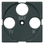 Zentralplatte für handelsübliche Antennensteckdosen, 3-Loch, Beschriftung „TV“, „R“ und „SAT“, Farbe: Anthrazit