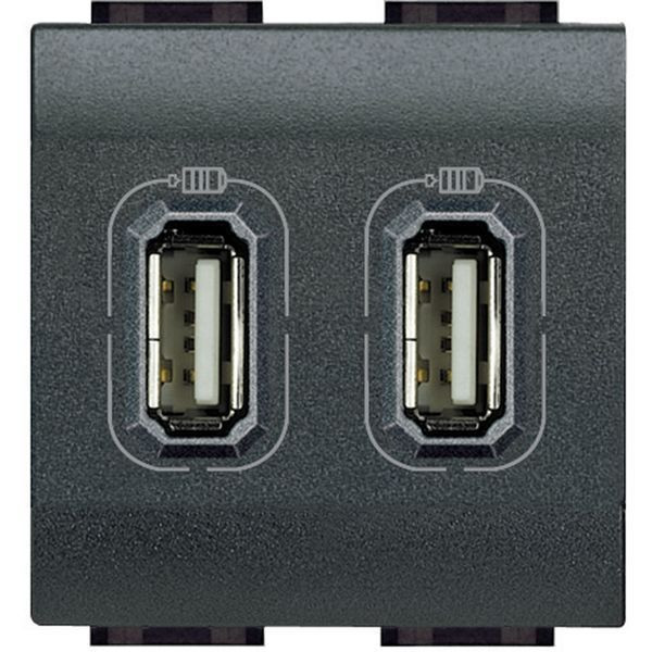 USB-Ladesteckdose 2-fach mit Ausgangsspannung 5 VDC mit max. Ladestrom von 1500 mA für ein Gerät oder 750 mA pro Ausgang bei gleichzeitigem Laden von 2 Geräten – Spannungsversorgung 230 VAC – 2 Module, Farbe: Anthrazit