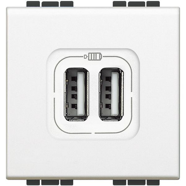 USB-Ladesteckdose 2-fach mit Ausgangsspannung 5 VDC mit max. Ladestrom von 1500 mA für ein Gerät oder 750 mA pro Ausgang bei gleichzeitigem Laden von 2 Geräten – Spannungsversorgung 230 VAC – 2 Module, Farbe: Weiß