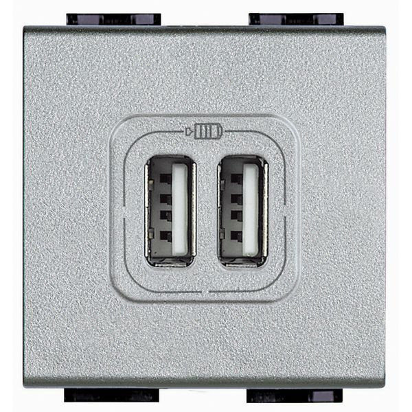 USB-Ladesteckdose 2-fach mit Ausgangsspannung 5 VDC mit max. Ladestrom von 1500 mA für ein Gerät oder 750 mA pro Ausgang bei gleichzeitigem Laden von 2 Geräten – Spannungsversorgung 230 VAC – 2 Module, Farbe: Tech