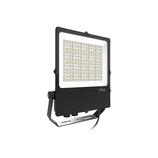 Flutlichtstrahler, asymmetrisch, in Super-Slim-Bauform, Kühlkörper aus Aluminiumdruckguss, Schutzart IP66 IK08, Leistung 4-stufig in 300W/250W/200W/100W mit DIP-Schalter einstellbar, Lichtfarbe in 3000K Warmweiß/4000K Neutralweiß/5700K Tageslichtweiß 3-stufig mit DIP-Schalter einstellbar, Vorinstallierte 3x1,0mm² Gummileitung mit 0,9 Meter Länge als Anschlussleitung, inklusive SVP (6KV Überspannungsschutz), Gehäusematerial: Aluminiumgedruckguss+Glas, Gehäusefarbe: Schwarz, LED: LUMILEDS 3030 von PHILIPS, Montageart: Decke, Wand, Boden, Mast, Lichtstrom: max. 36000lm, Lebensdauer: >50.000 Std., Ausstrahlungswinkel: durchschnittlich 68°, Lichtverteilung: 30x100°, CRI>80, flackerfrei, Temperaturbereich: -30 bis +55°C, schwenkbar, Anschlussleistung: AC100-270V 50Hz, Abmessung: 497x427x58mm, Garantie: 5 Jahre