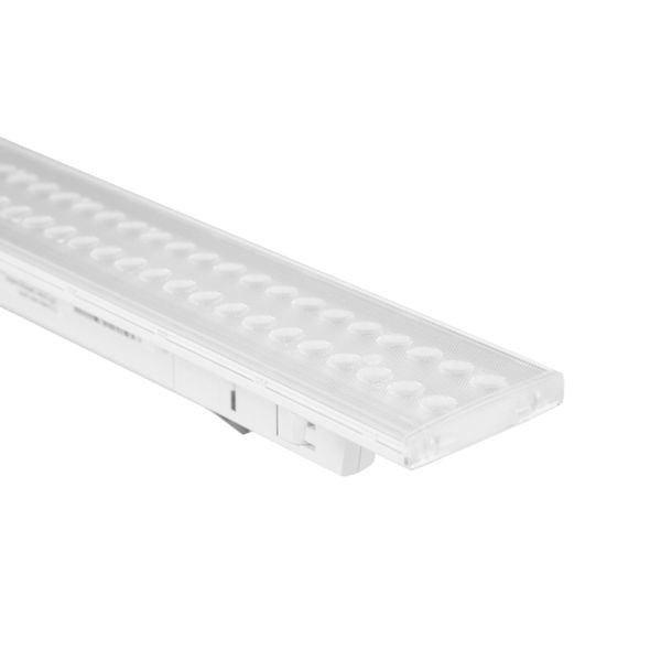 LED-Schienenlichtband, Ultraflaches, filigranes Design, für 3-Phasenschiene geeignet, Länge: 600mm, Leistung: max. 20W, max. 3200lm, IP20, Gehäusefarbe: Weiß RAL 9016, Lichtfarbe 4000K Neutralweiß, Ausstrahlungswinkel: 90°, CRI>90, Leistung in 20W/18W/16W/14W mit DIP-Schalter einstellbar, Anschlussleistung: AC180-250V, 50Hz, Abmessung: 600x60x10/28mm, Lebensdauer: >50.000 Std., Montageart: mit 3-Phasenschiene