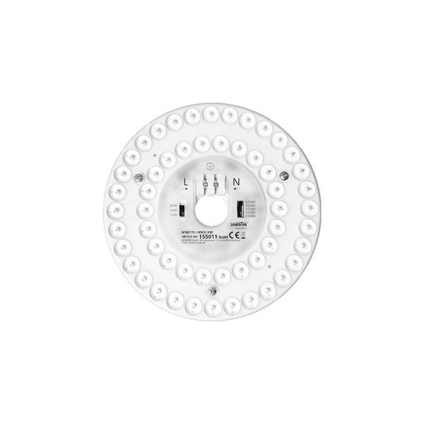 LED-Sanierungsleuchte, LED-Ersatzmodul für Deckenleuchte, Durckmesser: Ø170mm, Leistung 3-stufig in 12W/18W/24W durch DIP-Schalter einstellbar, Lichtfarbe 5-stufig in 2700K/3000K/3500K/4000K/5000K durch DIP-Schalter einstellbar, einfache Installation: direkt magnetisch haftend auf Metall oder alternativ Schraubmontage, optimale Wärmeableitung: Aluminiumstreifen und spezielle Steckverbinder für effiziente Kühlung und längere Lebensdauer, zahlreiche verteilte LEDs mit Linsentechnologie gewährleisten eine gleichmäßige Lichtverteilung, mit integriertem Netzteil kein externes LED-Treiber erforderlich, Gehäusematerial: Aluminium, Gehäusefarbe: Grau, Maße: Ø170x10mm, Gewicht: 500g, Lichtstrom: max.2880lm, CRI>80, Ausstrahlungswinkel: 180°, Schutzart: IP20, Lichtausbeute: max. 120lm/W, Anschlussleistung: AC120/230V, 50/60Hz, Schutzklasse: I