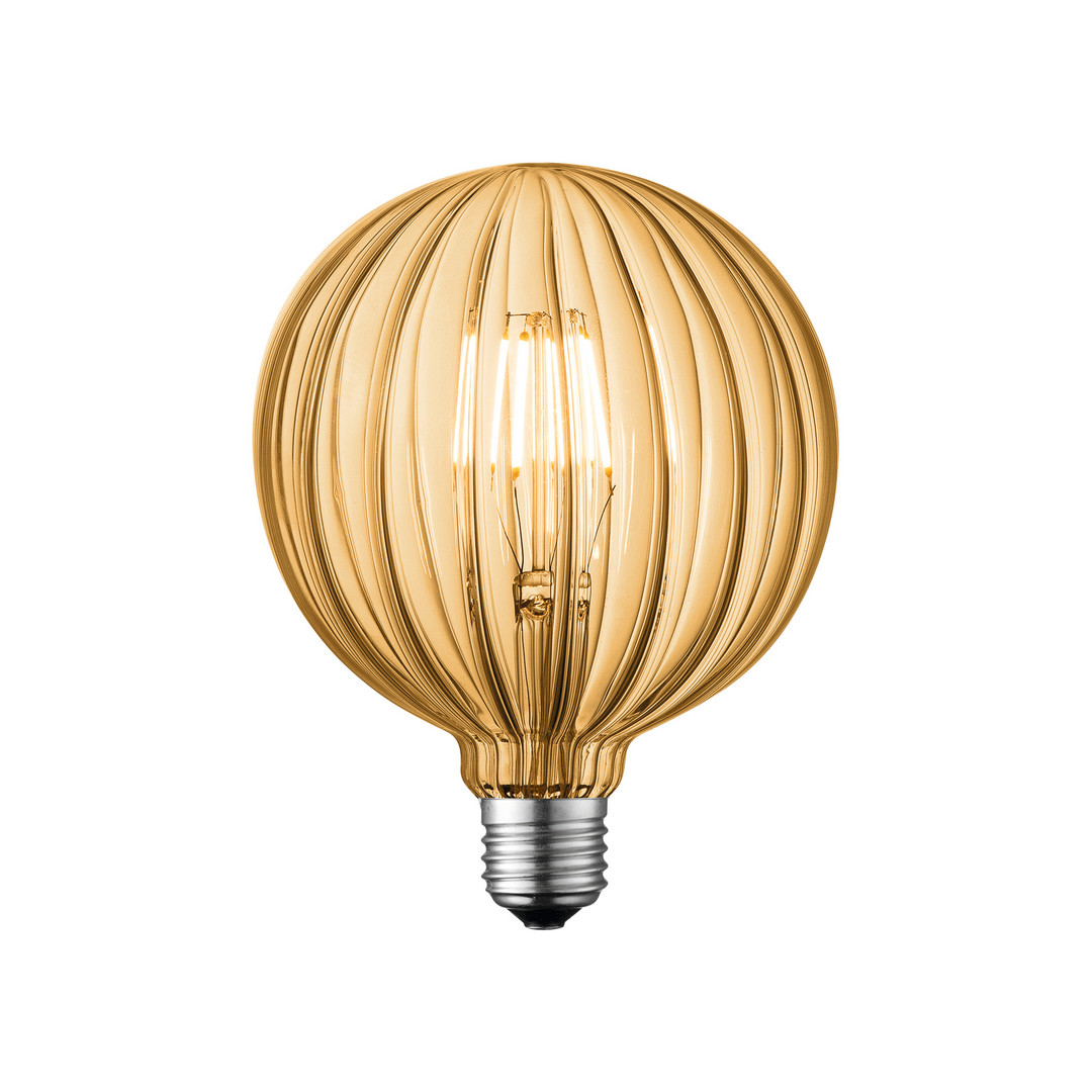 Bernsteinfarben, Dimmfunktion mit geeigneten Dimmer, Farbwiedergabeindex größer 80, E27, 340 lm, 4 W Farbtemperatur 2700 K, warmweiß, durchschnittliche Lebensdauer 20000 Stunden bei 15000 Schaltzyklen, Startzeit 0,5 Sekunden, vergleichbar mit einer 31 W Glühbirne, Länge / Breite / Höhe: 12,5 / 12,5 / 17 cm