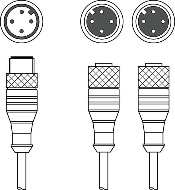 Anschluss 1: Rundstecker, M12, axial, male, A-kodiert, 4 -polig; Anschluss 2: Rundstecker, M12, axial, female, A-kodiert, 4 -polig; Anschluss 3: Rundstecker, M12, axial, female, A-kodiert, 4 -polig; Geschirmt: Nein; Leitungslänge: 1.000 mm