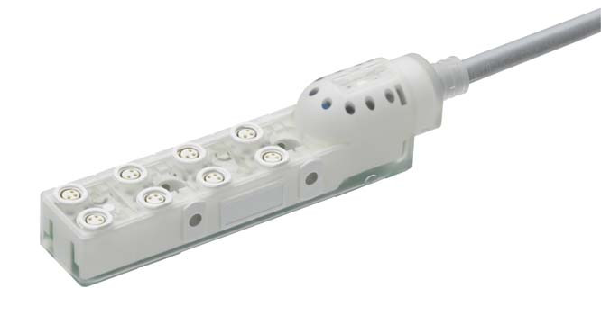 Stammanschluss: Leitung, 10.000 mm; Aderzahl: 3 St.; Anzahl Verteileranschlüsse: 8 St.; Verteiler: M8, 3 -polig, A-kodiert, female; Gehäuse: Kunststoff, transluzent, weiß; Anzeige: LED; Schutzart: IP 67, IP 65