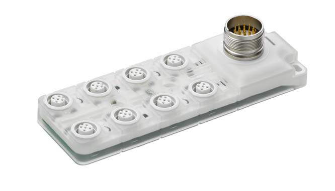 Stammanschluss: Rundstecker, M23, 19 -polig, A-kodiert, male; Anzahl Verteileranschlüsse: 8 St.; Verteiler: M12, 5 -polig, A-kodiert, female; Gehäuse: Kunststoff, transluzent, weiß; Anzeige: LED; Schutzart: IP 67, IP 65