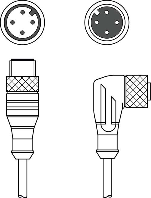 Anschluss 1: Rundstecker, M12, gewinkelt, female, A-kodiert, 4 -polig; Anschluss 2: Rundstecker, M12, axial, male, A-kodiert, 4 -polig; Geschirmt: Nein; Leitungslänge: 1.500 mm; Werkstoff Mantel: PUR