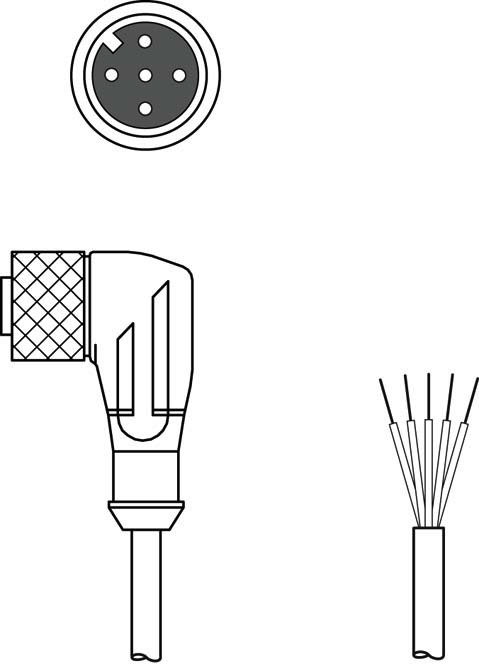 Anschluss 1: Rundstecker, M12, gewinkelt, female, A-kodiert, 5 -polig; Rundstecker, LED: Nein; Anschluss 2: offenes Ende; Geschirmt: Ja; Leitungslänge: 2.000 mm; Werkstoff Mantel: PUR