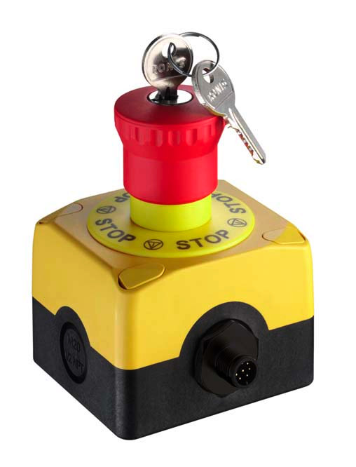 Kontaktbestückung: 2NC + 1NO; Leitungseinführung: , M12; Anschluss: Rundstecker; Abmessung: 80 mm x 101,8 mm x 72 mm; Werkstoff Gehäuse: Kunststoff, glasfaserverstärkt (PPS), selbstverlöschend; Einbaulage: beliebig; Schaltertyp: NOT-HALT Befehlsgerät, EN ISO 13850; Betätigungskraft Taster: 25 N; Schutzart: IP 67, IP 69K; Zulassungen: c UL US
