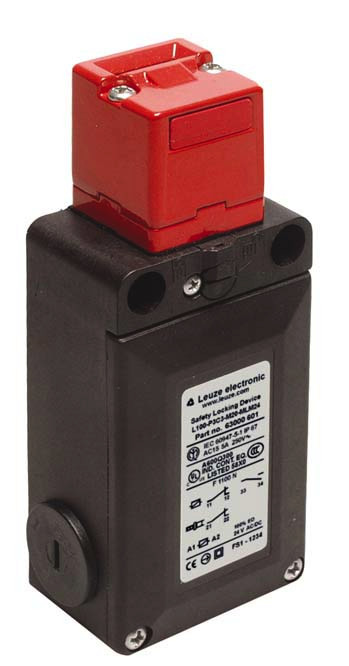 Serie: L100; Funktionen: Verriegelungseinrichtung mit Zuhaltung nach ISO 14119, Einschaltstromreduzierung, einstellbar, Hilfsentriegelung, Mechanische Zuhaltung (Federkraft), Steuerungstechnische Einbindung bis Kategorie 4 nach EN ISO 13849-1; Funktionsprinzip: Ruhestromprinzip - Betätiger verriegelt bei deaktiviertem Elektromagneten; Anschluss: Klemme, 8 -polig; Abmessung: 60,8 mm x 37,6 mm x 135 mm; Werkstoff Gehäuse: Kunststoff; Zuhaltekraft, max.: 1.100 N; Schutzart: IP 67; Zulassungen: IMQ, c UL US