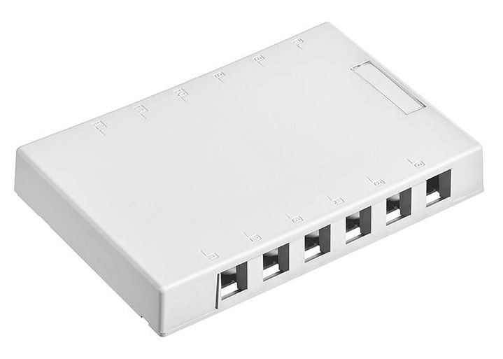Aufputzdosen besitzen Ausbrüche, um gängige Leitungskanal-systeme und verschiedene Kabelzuführungen zu unterstützen.