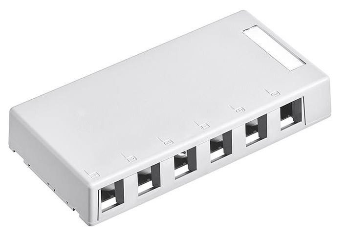 Aufputzdosen besitzen Ausbrüche, um gängige Leitungskanal-systeme und verschiedene Kabelzuführungen zu unterstützen.