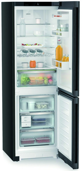 Kühlteil: PowerCooling mit FreshAir-Aktivkohlefilter, SuperCool, LED-Deckenbeleuchtung, 4 Ablageflächen, davon 3 höhenverstellbar, davon 1 teilbar, 1 Flaschenbord, Platz für Backblech, 1 EasyFresh-Safe auf Laufschienen,