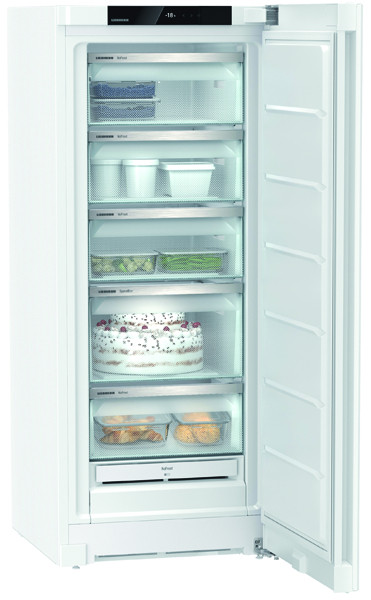 LC-Display monochrom hinter der Tür mit Touch-Elektronik, SuperFrost, NoFrost Abtauautomatik, Warnsignal optisch und akustisch bei Störung, Türalarm optisch und akustisch, FrostProtect, SmartDeviceBox nachrüstbar, 5 Schubfächer inkl. 1 SpaceBox, VarioSpace durch herausnehmbare Schubfächer und Glaszwischenböden, Türanschlag rechts, wechselbar