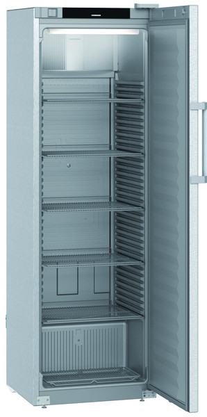 Kühlgerät mit Umluftkühlung, PerfectionSteuerung: Elektronische Steuerung, Material Tür: Volltür, Material/Farbe Gehäuse: Edelstahl / Edelstahl, Schloss: mechanisch