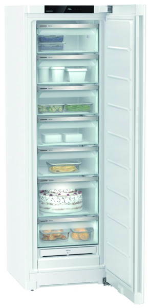 LC-Display monochrom hinter der Tür mit Touch-Elektronik, SuperFrost, NoFrost Abtauautomatik, Alarm bei Störung und Türalarm optisch und akustisch, FrostProtect, SabbathMode, Displaysperre, inkl. SmartDeviceBox, 7 Schubfächer inkl. 1 SpaceBox, oberstes Schubfach mit komfortabler Neigungsfunktion, Gefriertablett, VarioSpace durch herausnehmbare Schubfächer, Türanschlag rechts, wechselbar