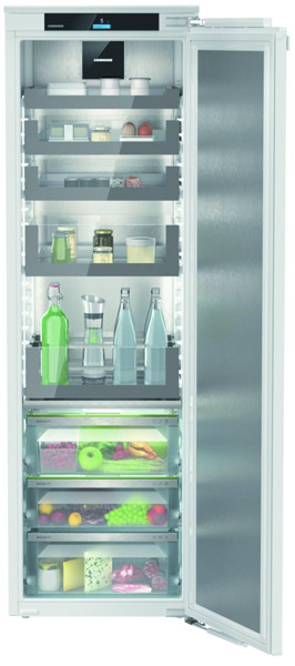 2,4“ TFT-Display farbig mit Touch & Swipe-Elektronik, Türalarm optisch und akustisch, Energiesparmodus, HolidayMode, SabbathMode, Displaysperre, inkl. SmartDevice-Box, PowerCooling mit Ambiente-Beleuchtung mit FreshAir-Aktivkohlefilter, SuperCool, Rückwand und Türpanel in Edelstahl mit SmartSteel, LED-Lichtpanel beidseitig, 5 höhenverstellbare, vollausziehbare OpenStage-Schubfächer mit Selbsteinzug und Schließdämpfung, 3 BioFresh-Safes mit LED-Beleuchtung auf Teleskopschienen ausziehbar mit Vollauszug, Selbsteinzug und Dämpfung, davon 2 Fruit & Vegetable-Safe und 1 Meat & Dairy-Safe, 1 FlexSystem, Türanschlag rechts, wechselbar, Soft-System-Schließdämpfung