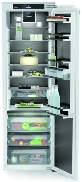 2,4“ TFT-Display farbig mit Touch & Swipe-Elektronik, Türalarm optisch und akustisch, Energiesparmodus, HolidayMode, SabbathMode, Displaysperre, inkl. SmartDevice-Box, PowerCooling mit Ambiente-Beleuchtung mit FreshAir-Aktivkohlefilter, SuperCool, Rückwand und Türpanel in BlackSteel, LED-Lichtpanel beidseitig, 7 Ablageflächen, davon 6 höhenverstellbare GlassLine-Abstellflächen, davon 1 teilbar, 1 VarioSafe Schublade, integrierte Flaschenablage, Platz für Backblech, 3 BioFreshProfessional mit LED-Beleuchtung auf Teleskopschienen ausziehbar mit Vollauszug, Selbsteinzug und Dämpfung, davon 2 Fruit & Vegetable-Safe (1x mit HydroBreeze) und 1 Meat & Dairy-Safe, 1 FlexSystem, Türanschlag rechts, wechselbar, Soft-System-Schließdämpfung
