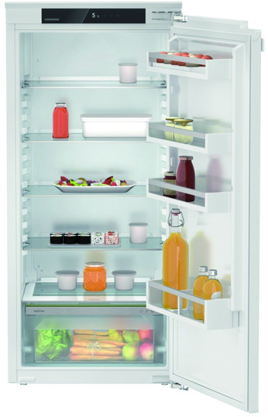 LC-Display monochrom mit Touch-Elektronik, Türalarm optisch und akustisch, Energiesparmodus, HolidayMode, SabbathMode, Displaysperre, SmartDevice-Box nachrüstbar, SuperCool, LED-Deckenbeleuchtung, 5 GlassLine-Abstellflächen, davon 4 höhenverstellbar, Platz für Backblech, 1 EasyFresh-Box auf Auszugsschienen, Türanschlag rechts, wechselbar