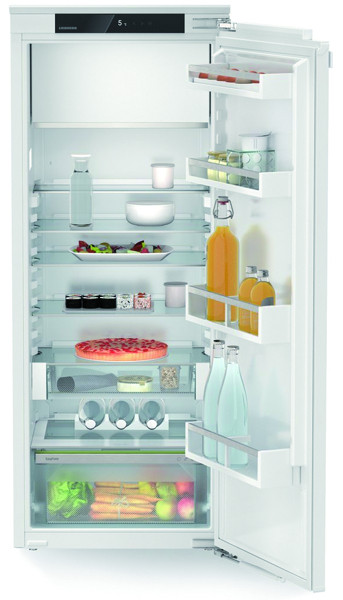 LC-Display monochrom mit Touch-Elektronik, Türalarm optisch und akustisch, Energiesparmodus, HolidayMode, SabbathMode, Displaysperre, SmartDevice-Box nachrüstbar, Kühlteil: SuperCool, LED-Beleuchtung beidseitig, 6 GlassLine-Abstellflächen, davon 5 höhenverstellbar, 1 davon teilbar, 1 VarioSafe Schublade, 3er Flaschenablage, Platz für Backblech, 1 EasyFresh-Box auf Auszugsschienen; 4-Sterne-Gerierfach mit Türanschlagwechsel mit Schieberegler; Türanschlag rechts, wechselbar, Schließdämpfung