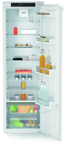 LC-Display monochrom mit Touch-Elektronik, Türalarm optisch und akustisch, Energiesparmodus, HolidayMode, SabbathMode, Displaysperre, SmartDevice-Box nachrüstbar, Umluftkühlung, FreshAir-Aktivkohlefilter, SuperCool, LED-Deckenbeleuchtung, 7 GlassLine-Abstellflächen, davon 6 höhenverstellbar, 1 Metall-Flaschenbord, Platz für Backblech, 1 EasyFresh-Box auf teilausziehbaren Teleskopschienen, 1 Universal-Schubfach, Türanschlag rechts, wechselbar