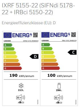 | Durchschnittlicher Energieverbrauch in kWh/Jahr | 190 kWh |
