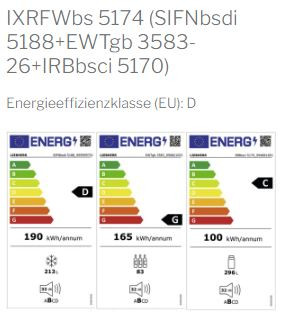 Side-by-Side Set (auch als Einzelgeräte nutzbar), integrierbar, Rauminhalt Kühlen: 296 l, davon Frische-Zone: 97,9 l, BioFresh, HydroBreeze (der kalte Nebel, verbunden mit der Temperatur im Safe um 0°C, gibt Lebensmitteln den Extra-Kick für längere Haltbarkeit ), Super-Kühlen, Umluftkühlung, Flaschenablage (liegend), Frische-Behälter: 3, Glasablageflächen: 6, Holz-Ablageflächen: 8, VarioSafe (Kleinere Lebensmittel, Packungen, Tuben und Gläser sind in diesem Schubfach optimal aufbewahrt), LED-Beleuchtung, Rauminhalt Gefrieren: 213 l, Schubladen: 8, VarioSpace (einzelne Gefrierschubfächer herausnehmbar, für extra hohen Stauraum), NoFrost, Super-Gefrieren, LED-Beleuchtung, Eisbereiter für Eiswürfel, Temperier-Schrank, Temperaturzonen: 2, regelbare Kältekreisläufe: 2, Display, farbig, 2,4 Zoll, 6,1 cm, Touch-Funktion, digitale Temperaturanzeige, SmartDevice integriert (Steuerung über Internetverbindung möglich), per App unterstützter Datentransfer, per App steuerbar, Energieeffizienzklasse D