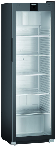 LC-Display monochrom mit Temperaturanzeige digital außen in der Tür, dynamische Kühlung, Temperaturbereich -2 bis +15°C, automatische Abtauung, LED-Beleuchtung, 6 Ablageflächen, davon 5 verstellbare Roste, Belastbarkeit je Ablagefläche 45 kg, Kapazität: 253 PET-Flaschen 0,5 l oder 506 Dosen 0,33 l, selbstschließende Isolierglastür mit elektronischem Schloss und Fernbedienung, Türanschlag rechts, wechselbar