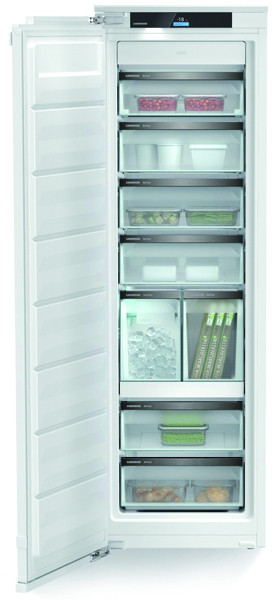 2,4" TFT-Display farbig hinter der Tür, Touch- & Swipe, SuperFrost, NoFrost Abtauautomatik, Alarm bei Störung optisch und akustisch, Türalarm optisch und akustisch, EnergySaver, SabbathMode, PartyMode, Displaysperre, inkl. SmartDeviceBox, LED-Beleuchtung, 8 Schubfächer, davon 5 auf Teleskopschienen, Gefriertablett, VarioSpace durch herausnehmbare Schubfächer und Glaszwischenböden, IceMaker mit Beleuchtung und Festwasserschlauch mit WaterStop, ca. 0,8 kg Eiswürfel/24 Std., Eiswürfelvorrat 5,7 kg, Türanschlag links, wechselbar, Schließdämpfung, Seitenwandheizung beidseitig, geeignet für Kombination mit anderen Kühl-, Gefrier- und/oder Weingeräten