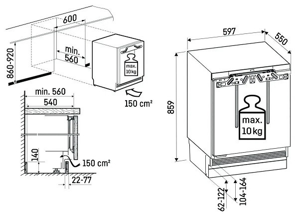 Temperatureinstellung auf 3, 5, 7 oder 9 °C mit TouchControl, Alarm bei Störung und Türalarm optisch und akustisch, SabbathMode, Displaysperre, Kühlteil: PowerCooling mit FreshAir-Aktivkohlefilter, SuperCool, LED-Beleuchtung, 3 GlassLine-Abstellflächen, davon 2 höhenverstellbar, 1 Halbes Obst- und Gemüsefach, 1 transparente Schublade, Türanschlag rechts, wechselbar