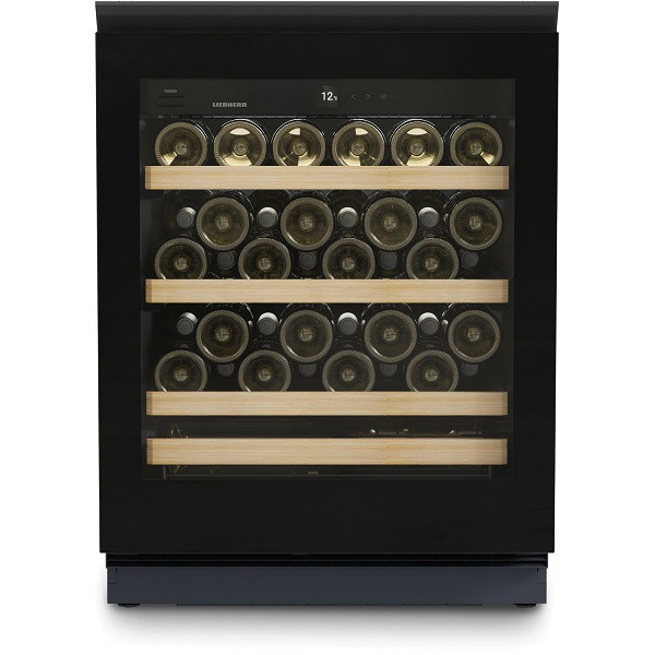 LC-Display monochrom mit Touch-Elektronik und digitaler Temperaturanzeige, TempProtect Plus mit 2 Temperatursensoren, SabbathMode, Alarm bei Störung und Türalarm optisch und akustisch, SmartDeviceBox nachrüstbar, Umluftkühlung, Frischluftzufuhr über FreshAir-Aktivkohlefilter, HumiditySelect: verstellbare Luftfeuchtigkeit, BlackSteel Rückwand, LED-Zonenbeleuchtung (dimmbar, dauerhaft zuschaltbar), 4 Ablageflächen, davon 3 Metallborde mit Holzfront auf SoftTelescopic-Schienen ausziehbar, Türanschlag rechts, wechselbar, Displaysperre, VibrateSafe, Stahlgehäuse mit Isolierglastür mit UV Protect